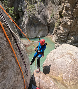 Descenso del divertido barranco de Çarçovës. Escondido entre montañas salvajes, sorprende por sus aguas turquesas, sus toboganes y sus pozas cristalinas. Un descenso divertido y visualmente atractivo, con increíbles saltos, pasadizos estrechos y un entorno virgen que lo convierten en una experiencia única.